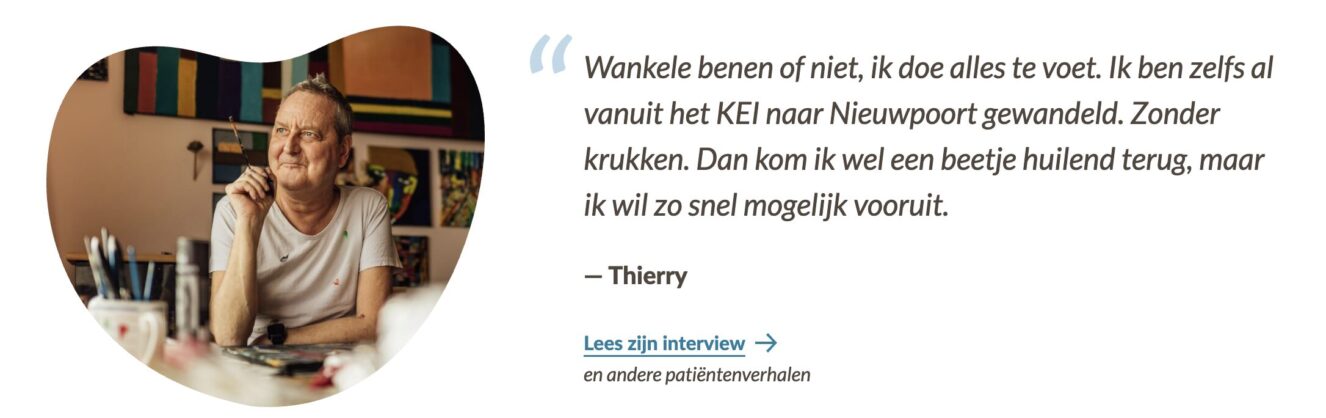 We vertrokken niet van een slogan, maar van mensen. Van echte verhalen, echte letsels en vooral echte motivaties. Van een persoon die droomt om opnieuw met de hond over het strand te kunnen wandelen, tot iemand die terug aan het werk wil kunnen. Iedereen revalideert met een eigen doel en op een eigen tempo, maar altijd met de steun en aanmoediging van KEI.