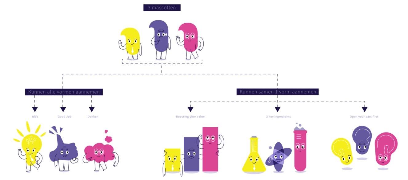 Sellmates zijn kleurrijke en dynamische figuurtjes geïnspireerd op het logo van de klant (ook van Impuls-makelij!). Deze drie “personages” geven een gezicht aan de sales-consultancydiensten van Valueselling Consulting en helpen ons als communicatiepartner met de storytelling. Ze vertellen het verhaal van onze klant, recht vanuit de kern van het klantverhaal.