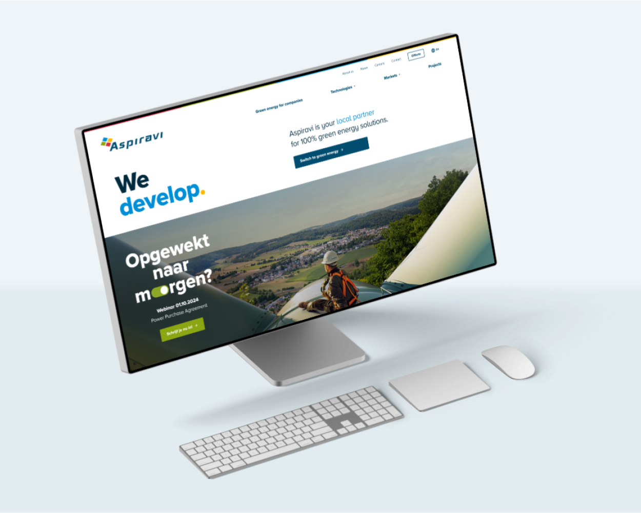 Aspiravi staat gekend om hun lokaal geproduceerde, 100% duurzame energie. Die bieden ze aan via zogenaamde PPA’s aan bedrijven die grote hoeveelheden energie nodig hebben. Onbekend is onbemind? Niet voor lang, want naar aanloop van het informatieve webinar op 3 oktober lanceerden we een promocampagne op maat van klant én resultaat. Een beeld met stopkracht, actiegerichte copy en slimme targeting zorgden voor een verdubbeling van het KPI op 1-2-3. Bullseye, baby!